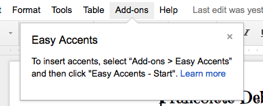 Accent marks in google docs.